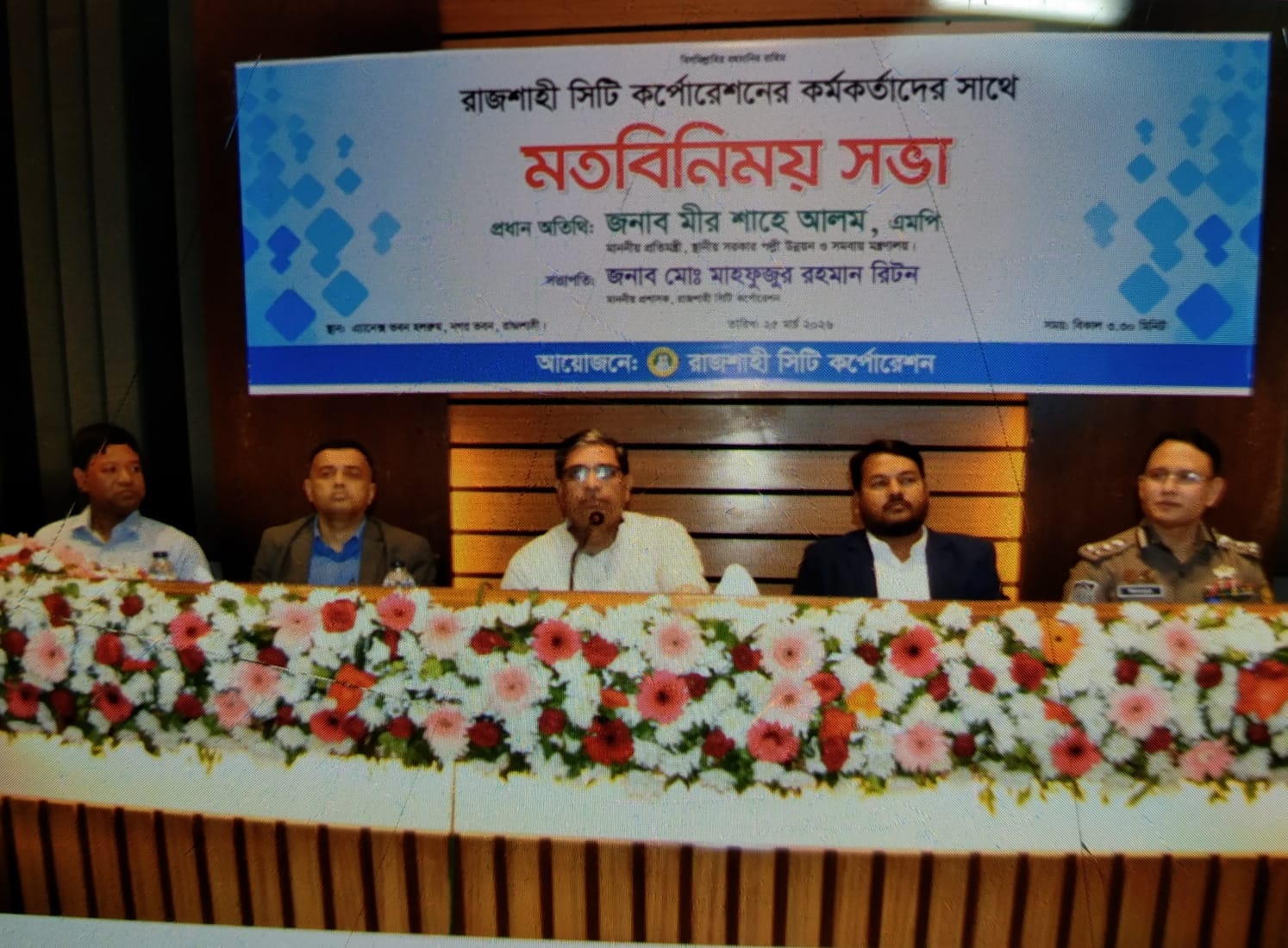 বুধবার বিকেলে নগর ভবনের সিটি হলরুমে রাজশাহী সিটি কর্পোরেশনের (রাসিক) কর্মকর্তাদের সঙ্গে মতবিনিময় সভায় প্রধান অতিথির বক্তব্যে তিনি এসব কথা বলেন। সভায় সভাপতিত্ব করেন রাসিকের প্রশাসক মো. মাহফুজুর রহমান রিটন।