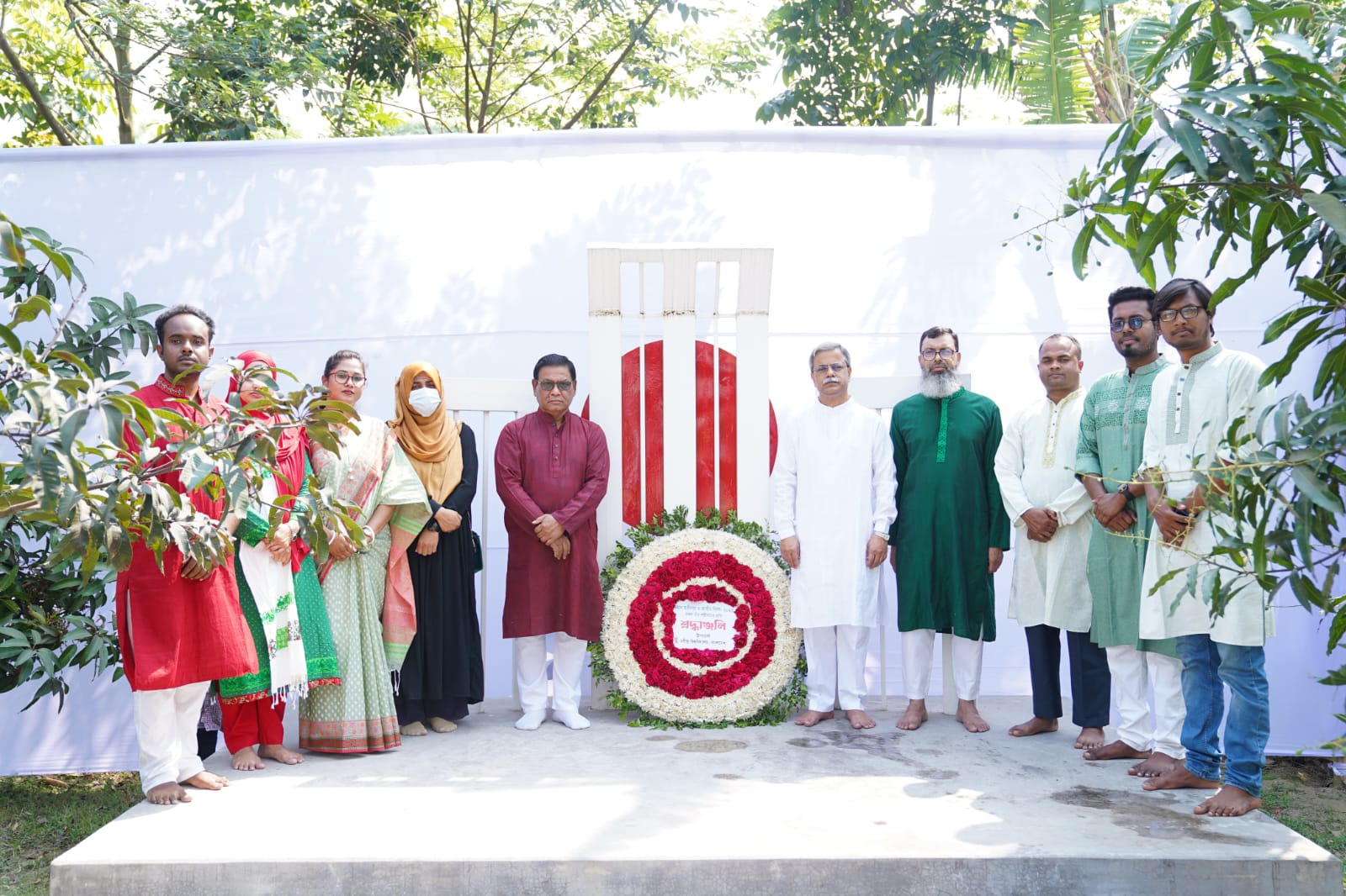 পুষ্পস্তবক অর্পণ করেন বিশ্ববিদ্যালয়ের মাননীয় উপাচার্য প্রফেসর ড. এস. এম. হাসান তালুকদার, প্রো-উপাচার্য প্রফেসর ড. সুমন কান্তি বড়ুয়া এবং ট্রেজারার প্রফেসর ড. ফিরোজ আহমদ। এ সময় বিশ্ববিদ্যালয়ের বিভিন্ন বিভাগের চেয়ারম্যান, শিক্ষক, শিক্ষার্থীসহ সংশ্লিষ্ট সকল স্তরের কর্মকর্তা-কর্মচারীরা উপস্থিত ছিলেন। শ্রদ্ধা নিবেদন শেষে শহিদদের আত্মার মাগফিরাত ও শান্তি কামনা করে এক মিনিট নীরবতা পালন করা হয়।