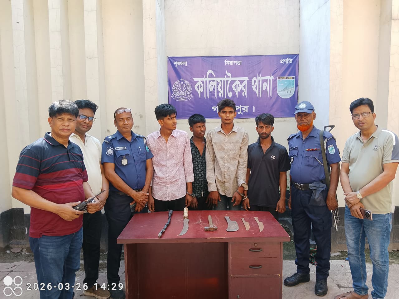 গাজীপুরের কালিয়াকৈর উপজেলায় ডাকাতির প্রস্তুতিকালে দেশীয় অস্ত্রসহ চারজনকে গ্রেফতার করেছে কালিয়াকৈর থানা পুলিশ। বুধবার (২৬ মার্চ) রাতে উপজেলার চন্দ্রা এলাকায় ঢাকা-টাঙ্গাইল মহাসড়কের পূর্ব পাশে অভিযান চালিয়ে তাদের আটক করা হয়।