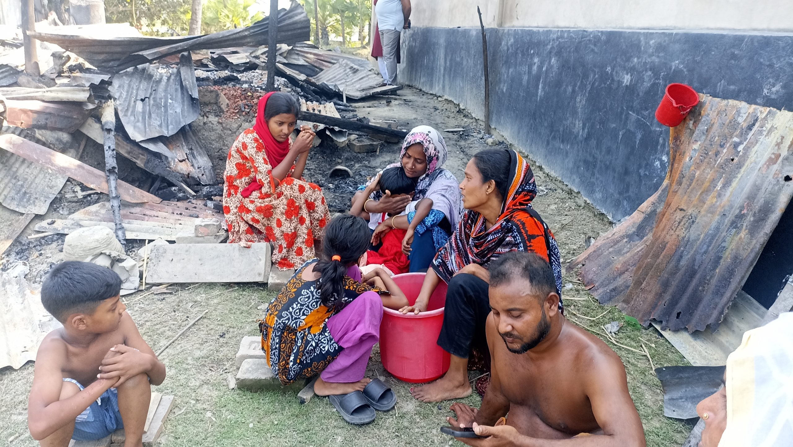 ঘটনার সময় বাড়িতে কেউ ছিলেন না। পরিবার সূত্রে জানা যায়, প্রতিবন্ধী বাহাদুর শিকদার বৃহস্পতিবার রাত ১২টার দিকে তার শ্বশুরের মৃত্যুর খবর পেয়ে স্ত্রী-সন্তানদের নিয়ে পাশের গ্রামে শ্বশুরবাড়িতে যান। ওই সুযোগে পরিকল্পিতভাবে আগুন দেওয়া হয়েছে বলে অভিযোগ তাদের।