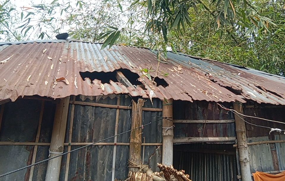 সোমবার সকালে সরেজমিনে গিয়ে দেখা যায়, গ্রামের বেশ কয়েকটি ঘরের টিন ঝাঁঝরা হয়ে গেছে। কোথাও পলিথিন টানিয়ে, কোথাও পুরোনো কাপড় দিয়ে কোনো রকমে বৃষ্টির পানি ঠেকানোর চেষ্টা করছেন বাসিন্দারা। শনিবার গুঁড়ি গুঁড়ি বৃষ্টি শুরু হলে ফুটো চাল দিয়ে ঘরে পানি পড়তে থাকে।