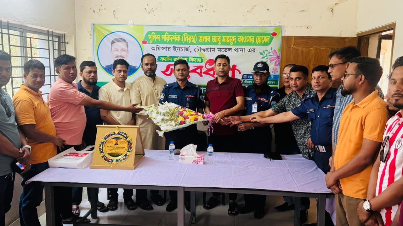 কুমিল্লার চৌদ্দগ্রাম মডেল থানার সদ্য বিদায়ী অফিসার ইনচার্জ (ওসি) আবু মাহমুদ কাওসার হোসেনকে সংবর্ধনা প্রদান করা হয়েছে। দায়িত্ব পালনকালে তার পেশাদারিত্ব, নেতৃত্বগুণ ও মানবিক আচরণের জন্য সহকর্মীদের পক্ষ থেকে তাকে সম্মাননা জানানো হয়। বিদায়ী এই আয়োজন ঘিরে থানার কর্মকর্তা-কর্মচারীদের মাঝে এক আবেগঘন পরিবেশের সৃষ্টি হয়।