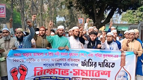 ব্রাহ্মণবাড়িয়ার নাসিরনগর উপজেলা এলাকায় মহানবী হযরত মুহাম্মদ (সা.)–এর শানে কটূক্তির অভিযোগকে কেন্দ্র করে বিক্ষোভ মিছিল ও সমাবেশ অনুষ্ঠিত হয়েছে। শুক্রবার (২৭ ফেব্রুয়ারি) জুমার নামাজের পর স্থানীয় একটি ধর্মভিত্তিক সংগঠনের উদ্যোগে…