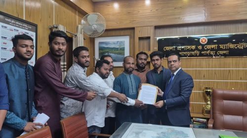 খাগড়াছড়িতে পার্বত্য চট্টগ্রাম আঞ্চলিক পরিষদ ও জেলা পরিষদের নির্বাচনসহ সাত দফা দাবিতে জেলা প্রশাসকের (ডিসি) কাছে স্মারকলিপি প্রদান করেছেন পার্বত্য চট্টগ্রাম নাগরিক পরিষদ (পিসিএনপি) ও পার্বত্য চট্টগ্রাম ছাত্র পরিষদ (পিসিসিপি)-এর…