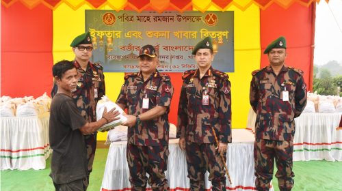 পবিত্র মাহে রমজান উপলক্ষে খাগড়াছড়িতে দুঃস্থ ও অসহায় পরিবারের মাঝে ইফতার সামগ্রী বিতরণ করেছে বর্ডার গার্ড বাংলাদেশ (বিজিবি)। পার্বত্য অঞ্চলে মানবিক সহায়তা প্রদান, শান্তি-সম্প্রীতি বজায় রাখা এবং সাধারণ মানুষের পাশে…