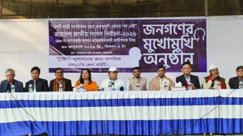 খাগড়াছড়িতে ত্রয়োদশ জাতীয় সংসদ নির্বাচনের প্রার্থীদের অংশগ্রহণে অনুষ্ঠিত হলো ব্যতিক্রমী নাগরিক সংলাপ ‘জনগণের মুখোমুখি’। শুক্রবার (৩০ জানুয়ারি) বিকাল ৩টায় খাগড়াছড়ি টাউন হল প্রাঙ্গণে সুজন—সুশাসনের জন্য নাগরিক, খাগড়াছড়ি জেলা কমিটির উদ্যোগে…