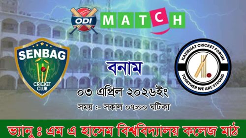 নোয়াখালীর বেগমগঞ্জ উপজেলার ক্রিকেটপ্রেমীদের জন্য অপেক্ষা করছে এক রোমাঞ্চকর ও প্রতিদ্বন্দ্বিতাপূর্ণ ম্যাচ। স্থানীয় দুই শক্তিশালী দল—সেনবাগ ক্রিকেট ক্লাব এবং কাজীরহাট ক্রিকেট ফোরাম—মুখোমুখি হতে যাচ্ছে একটি আকর্ষণীয় ওয়ান ডে ক্রিকেট লড়াইয়ে,…