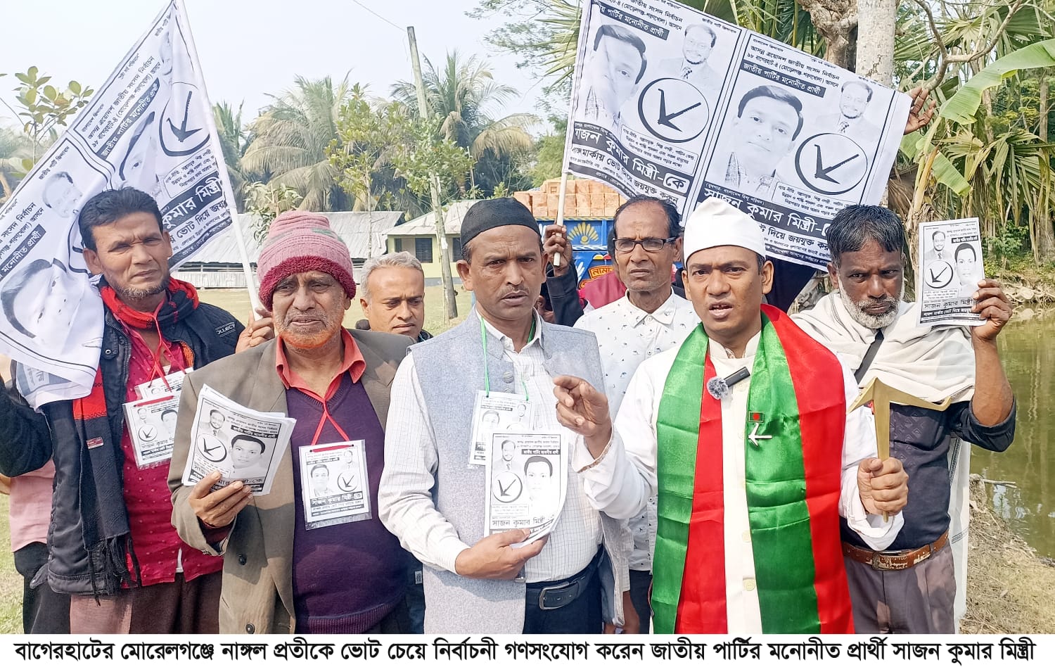 বাগেরহাট-৪ (মোরেলগঞ্জ–শরণখোলা) আসনে জাতীয় পার্টির মনোনীত প্রার্থী ও কেন্দ্রীয় জাতীয় পার্টির সংখ্যালঘু বিষয়ক প্রতিনিধি সাজন কুমার মিস্ত্রী নাঙ্গল প্রতীকে ভোট চেয়ে ব্যাপক গণসংযোগ ও লিফলেট বিতরণ করেছেন। শুক্রবার সকাল থেকে দিনব্যাপী মোরেলগঞ্জ উপজেলার বিভিন্ন ইউনিয়ন ও বাজার এলাকায় তিনি সাধারণ মানুষের সঙ্গে কুশল বিনিময় করেন এবং জাতীয় পার্টির উন্নয়ন ভাবনা তুলে ধরেন।