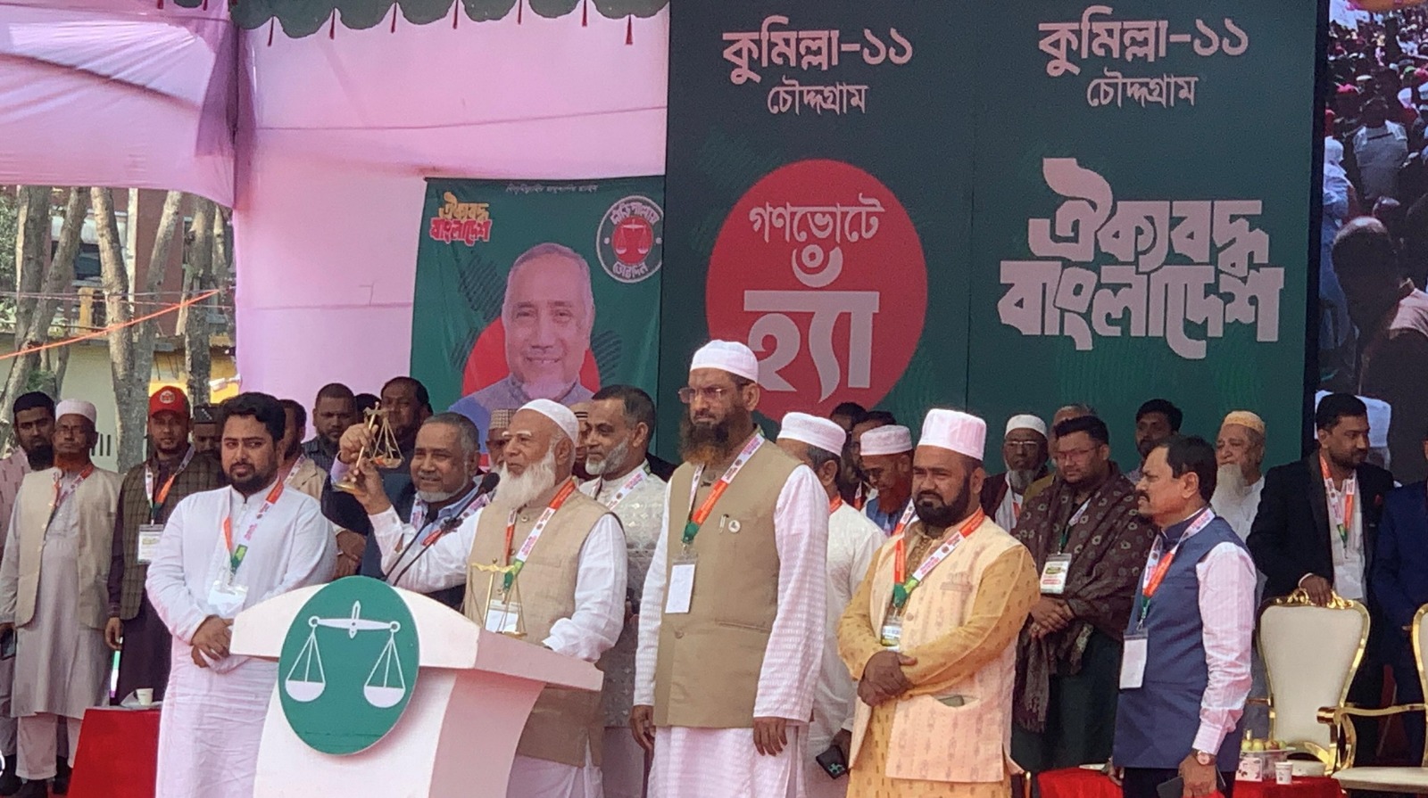 জনসভায় সভাপতিত্ব করেন কুমিল্লা-১১ (চৌদ্দগ্রাম) আসনের ১১ দলীয় জোট সমর্থিত দাঁড়িপাল্লা প্রতীকের প্রার্থী ও জামায়াতের কেন্দ্রীয় নায়েবে আমীর ডা. সৈয়দ আব্দুল্লাহ মোহাম্মদ তাহের। বিশেষ অতিথির বক্তব্য রাখেন এনসিপির আহ্বায়ক মো. নাহিদ ইসলাম, খেলাফত মজলিসের আমীর আল্লামা মামুনুল হকসহ বিভিন্ন রাজনৈতিক ও সামাজিক সংগঠনের কেন্দ্রীয় ও স্থানীয় নেতৃবৃন্দ।