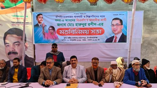 চাঁপাইনবাবগঞ্জের ব্যবসায়ী ও শিল্পপতিদের সঙ্গে সদর–৩ আসনের বিএনপির মনোনীত প্রার্থী মোঃ হারুনুর রশীদের মতবিনিময় সভা অনুষ্ঠিত হয়েছে। শনিবার (১০ জানুয়ারি) সকাল সাড়ে ১১টায় শহরের পাঠানপাড়া বিএনপির দলীয় কার্যালয়ের মাঠ প্রাঙ্গণে…