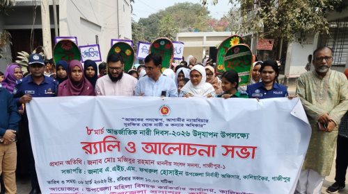 গাজীপুরের কালিয়াকৈর উপজেলায় যথাযোগ্য মর্যাদা ও নানা কর্মসূচির মধ্য দিয়ে আন্তর্জাতিক নারী দিবস উদযাপন করা হয়েছে। দিবসটি উপলক্ষে বর্ণাঢ্য র্যালি ও আলোচনা সভার আয়োজন করা হয়, যেখানে নারীর অধিকার, ক্ষমতায়ন…