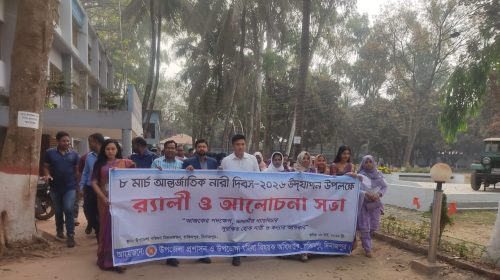 বাগেরহাট প্রতিনিধি: “আজকের পদক্ষেপ, আগামীর ন্যায় বিচার—সুরক্ষিত হোক নারী ও কন্যার অধিকার” এই প্রতিপাদ্যকে সামনে রেখে বাগেরহাটের রামপাল উপজেলায় যথাযোগ্য মর্যাদায় আন্তর্জাতিক নারী দিবস পালিত হয়েছে। দিবসটি উপলক্ষে র্যালি, আলোচনা…