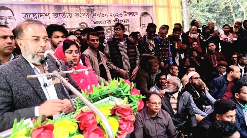 ত্রয়োদশ জাতীয় সংসদ নির্বাচনের প্রস্তুতি হিসেবে চাঁপাইনবাবগঞ্জে বাংলাদেশ জামায়াতে ইসলামী গত সোমবার (২৬ জানুয়ারি) শিবগঞ্জ উপজেলার নয়ালাভাঙ্গা ইউনিয়নের রানীহাটি হাইস্কুল মাঠে একটি বড় নির্বাচনী জনসভা আয়োজন করেছে। বিকাল ৩টায় শুরু…