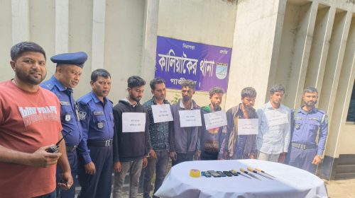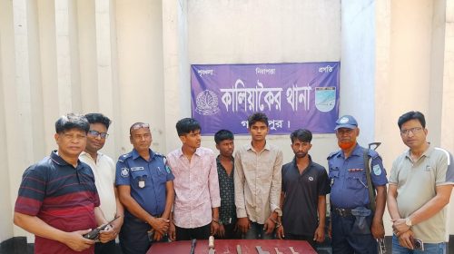 গাজীপুরের কালিয়াকৈর উপজেলায় যাত্রীবাহী গণপরিবহনে ডাকাতির প্রস্তুতিকালে দেশীয় অস্ত্রসহ ছয়জনকে গ্রেফতার করেছে থানা পুলিশ। মঙ্গলবার (১৭ ফেব্রুয়ারি) দিবাগত রাতে ঢাকা-টাঙ্গাইল মহাসড়কের চন্দ্রা এলাকায় ওয়াল্টন কারখানার সামনে এই অভিযান পরিচালিত হয়।…