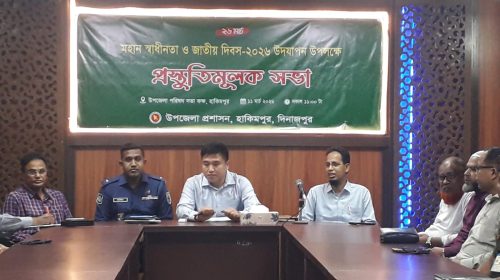 দিনাজপুরের হাকিমপুর উপজেলায় ২৫ মার্চ গণহত্যা দিবস এবং ২৬ মার্চ মহান স্বাধীনতা ও জাতীয় দিবস-২০২৬ যথাযোগ্য মর্যাদায় উদযাপন উপলক্ষে একটি প্রস্তুতিমূলক সভা অনুষ্ঠিত হয়েছে। উপজেলা প্রশাসনের উদ্যোগে আয়োজিত এ সভায়…