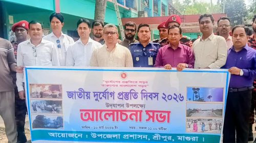'দুর্যোগ প্রস্তুতিতে লড়বো, তারুণ্যের বাংলাদেশ গড়বো”—এই প্রতিপাদ্যকে সামনে রেখে মাগুরার শ্রীপুরে জাতীয় দুর্যোগ প্রস্তুতি দিবস পালিত হয়েছে। দিবসটি উপলক্ষে উপজেলা প্রশাসন এবং দুর্যোগ ব্যবস্থাপনা ও ত্রাণ মন্ত্রণালয়ের উদ্যোগে নানা কর্মসূচির…