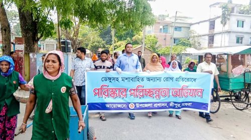 মাগুরার শ্রীপুরে ডেঙ্গু ও অন্যান্য মশাবাহিত রোগ প্রতিরোধে উপজেলা প্রশাসনের উদ্যোগে শনিবার সকালে ব্যাপক পরিচ্ছন্নতা অভিযান পরিচালিত হয়েছে। এই কার্যক্রমের মূল উদ্দেশ্য হলো এলাকায় স্বাস্থ্য ঝুঁকি হ্রাস করা এবং ডেঙ্গু,…