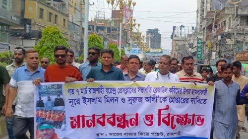রাজশাহীতে বরেন্দ্র প্রেসক্লাবের সভাপতি রেজাউল করিমের ওপর সশস্ত্র হামলার প্রতিবাদে মানববন্ধন ও বিক্ষোভ কর্মসূচি অনুষ্ঠিত হয়েছে। হামলার ঘটনায় জড়িতদের দ্রুত গ্রেপ্তার ও দৃষ্টান্তমূলক শাস্তির দাবিতে সাংবাদিক নেতারা তীব্র ক্ষোভ প্রকাশ…
