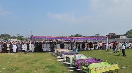 বাগেরহাটের রামপালে ভয়াবহ সড়ক দুর্ঘটনায় নিহত ১৪ জনের দাফন সম্পন্ন হয়েছে। শুক্রবার (১৩ মার্চ) জুমার নামাজের পর মোংলা উপজেলা পরিষদ মাঠে নিহত আবদুর রাজ্জাক সরদারের পরিবারের ৯ সদস্যের জানাজা অনুষ্ঠিত…