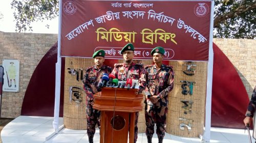 আসন্ন ত্রয়োদশ জাতীয় সংসদ নির্বাচন ও গণভোট–২০২৬কে সামনে রেখে খাগড়াছড়ি জেলার পানছড়ি উপজেলায় বহুমাত্রিক ও কঠোর নিরাপত্তা ব্যবস্থা গ্রহণ করেছে বর্ডার গার্ড বাংলাদেশ (বিজিবি)। সীমান্ত ও পাহাড়ি এই অঞ্চলে শান্তিপূর্ণ…