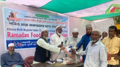 সিলেটের বিয়ানীবাজারে পবিত্র মাহে রামাদ্বান উপলক্ষে শতাধিক অসহায় পরিবারের মাঝে খাদ্য সামগ্রী বিতরণ করেছে হযরত আল্লামা মুফতি মুজাহিদ উদ্দিন চৌধুরী দুবাগী ছাহেব রাহমাতুল্লাহ আলাইহি ট্রাষ্ট। প্রতি বছরের ধারাবাহিকতায় এবারও ট্রাস্টের…