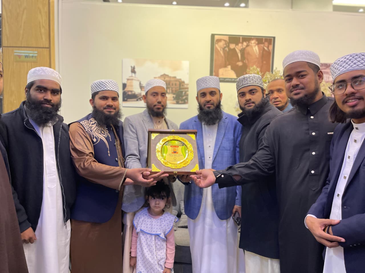 সাক্ষাৎকালে নাজাত কাফেলা ফরেইন শাখার সম্মানিত আহ্বায়ক ড. মুহাম্মাদ শিহাব উদ্দিন আজহারী, দারুননাজাত সিদ্দিকী কামিল মাদ্রাসার মুহতারাম অধ্যক্ষ আলহাজ্ব হযরত মাওলানা আ.খ.ম. আবুবকর সিদ্দিক হাফি. এবং নাজাত কাফেলা ফরেইন শাখার সম্মানিত সভাপতি আলহাজ্ব হযরত মাওলানা মুহাম্মাদ মাহবুবুর রহমান রাজাপুরী হুজুরের পক্ষ থেকে ড. আজহারীর নিকট শুভেচ্ছা ও সালাম পৌঁছে দেন।
